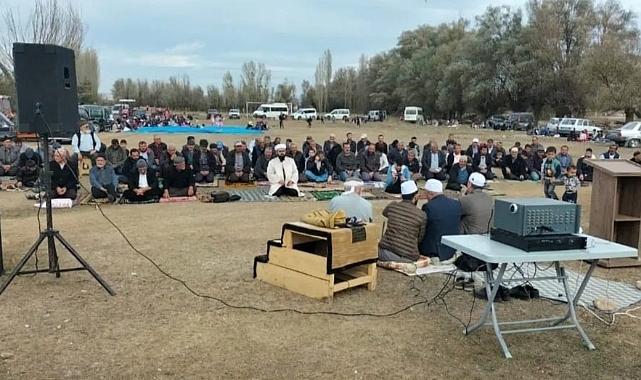 Köyde belirlenen alanda İlçe Müftüsü Aslan, tarafından kılınan şükür namazı sonrası Dua edildi.